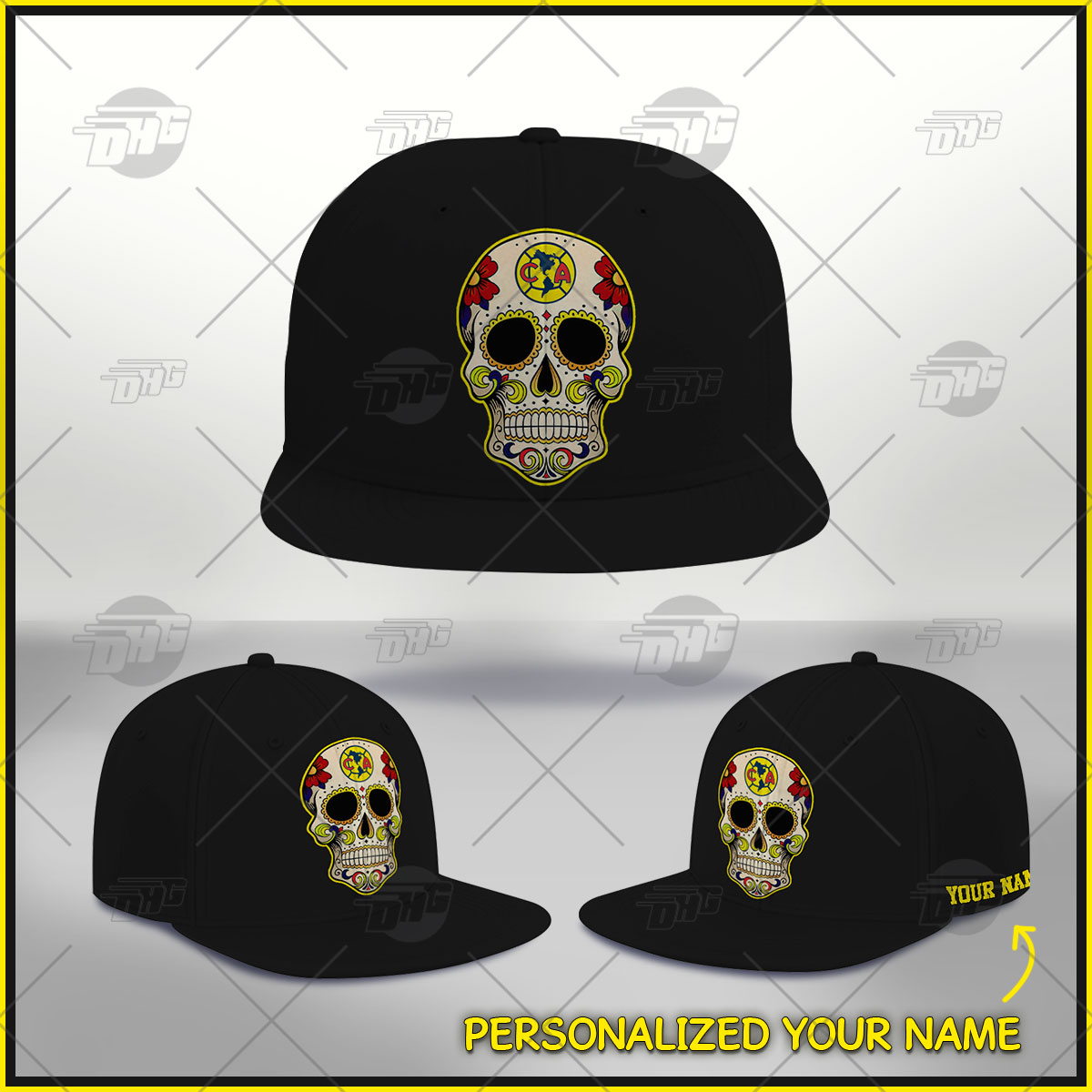 Personalized Sugar Skull Day Of The Dead Club America Fan Cap Hat Snapback Best Gift