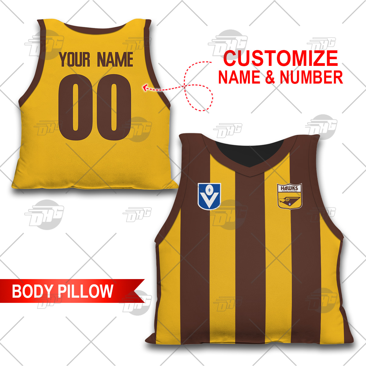 Personalised AFL Hawthorn Hawks Vintage Body Pillow Best gift for fans