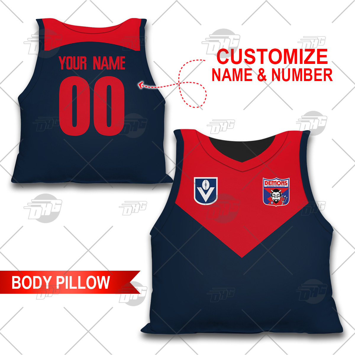 Personalised AFL Melbourne Demons Vintage Body Pillow Best gift for fans