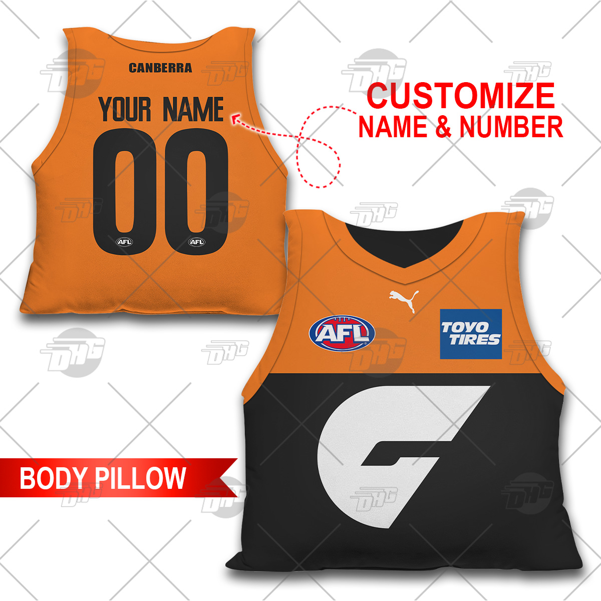 Personalised AFL Greater Western Sydney Giants BODY PILLOW Newest Collection Best GIFT