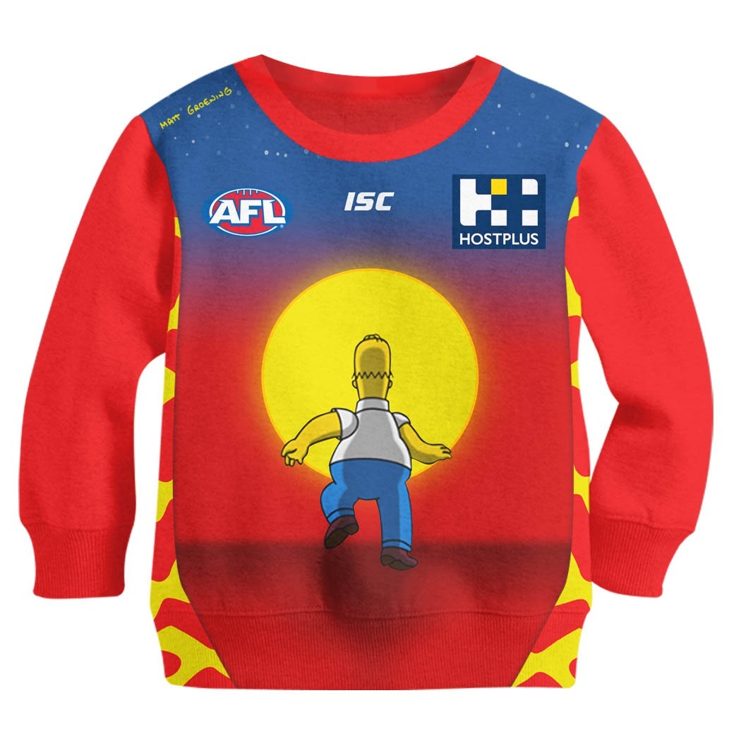 Personalize AFL Gold Coast Suns The Simpsons Guernsey Jumper Hoodie KID