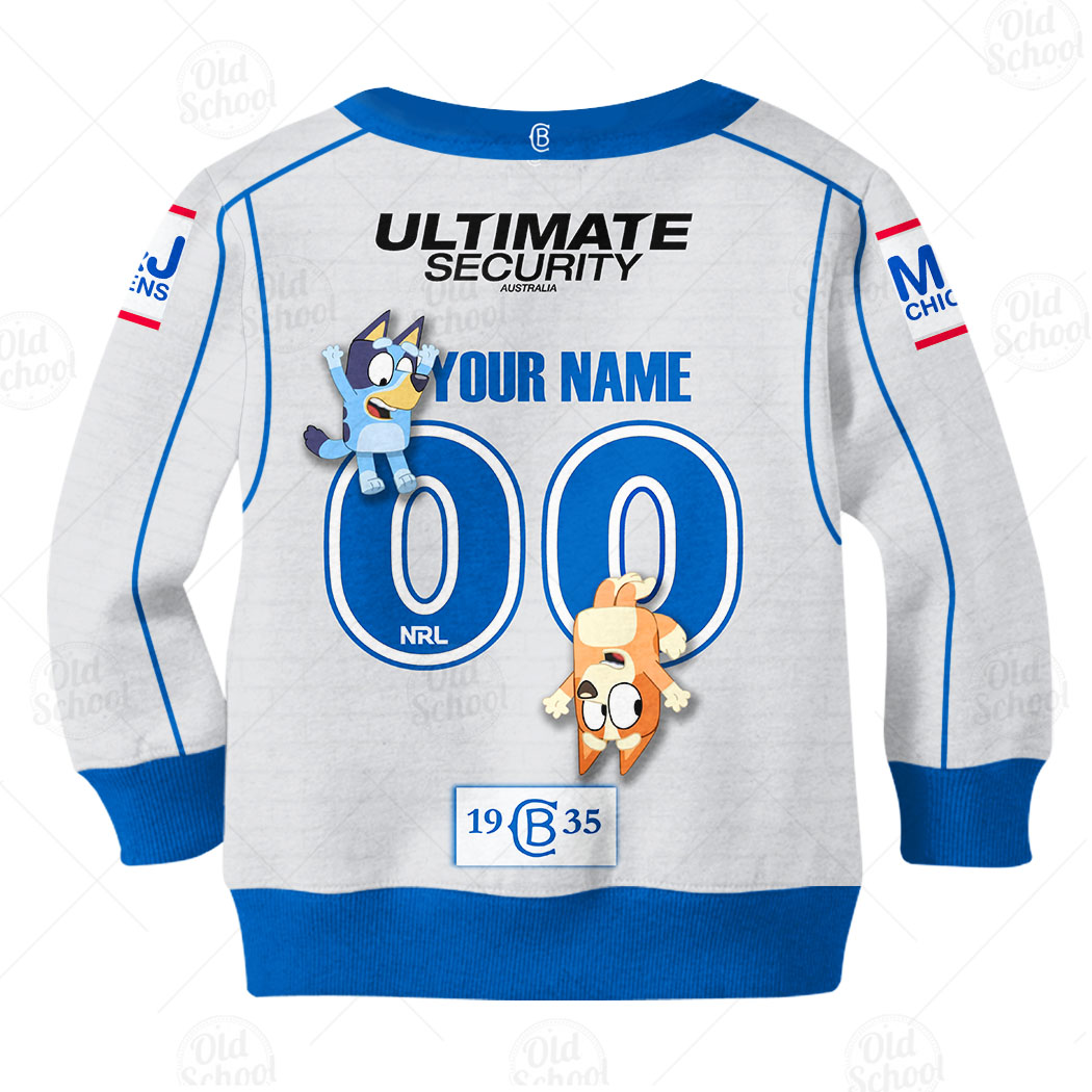Personalize NRL Canterbury Bankstown Bulldogs Bluey KID Jersey Hoodie T-Shirt