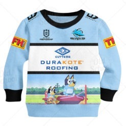 Personalize NRL Cronulla-Sutherland Sharks Bluey KID Jersey Hoodie T-Shirt