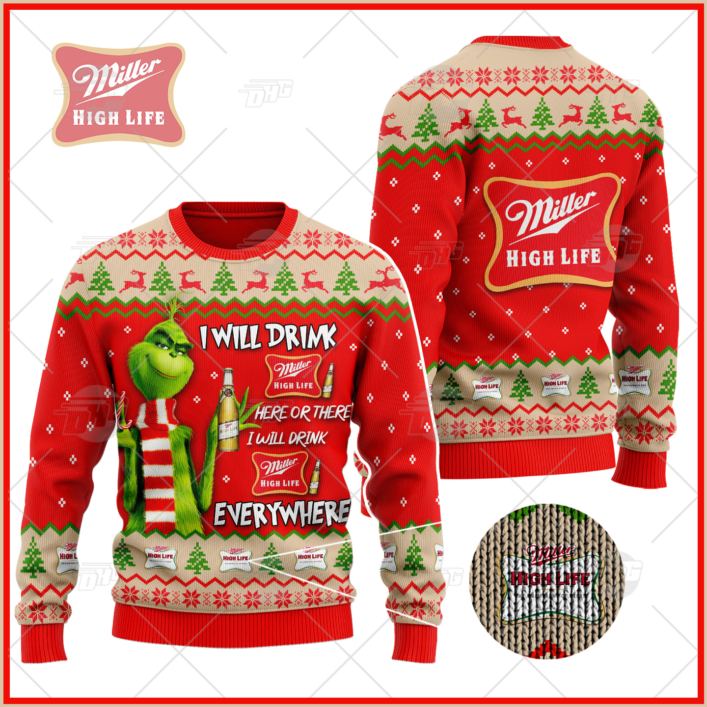 Be the first to review “Grinch I Will Drink Here Or There I Will Drink Everywhere Miller High Life Beer Ugly Christmas Holiday Sweater” Cancel reply