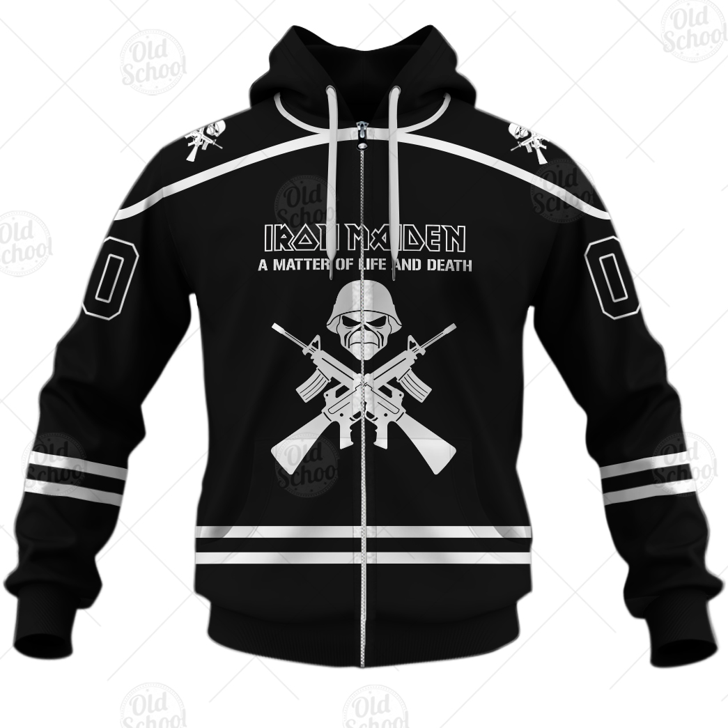 Personalized Iron Maiden A Matter of Life and Death Black Hockey Jersey Style Hoodie Long T Shirt