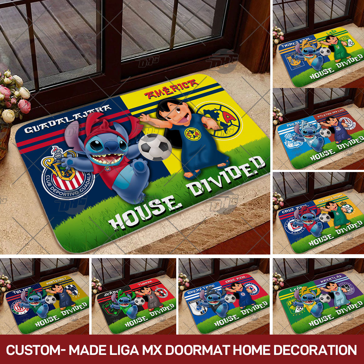 Custom-made Liga MX x Lilo and Stitch House Divided Doormat Home Decoration