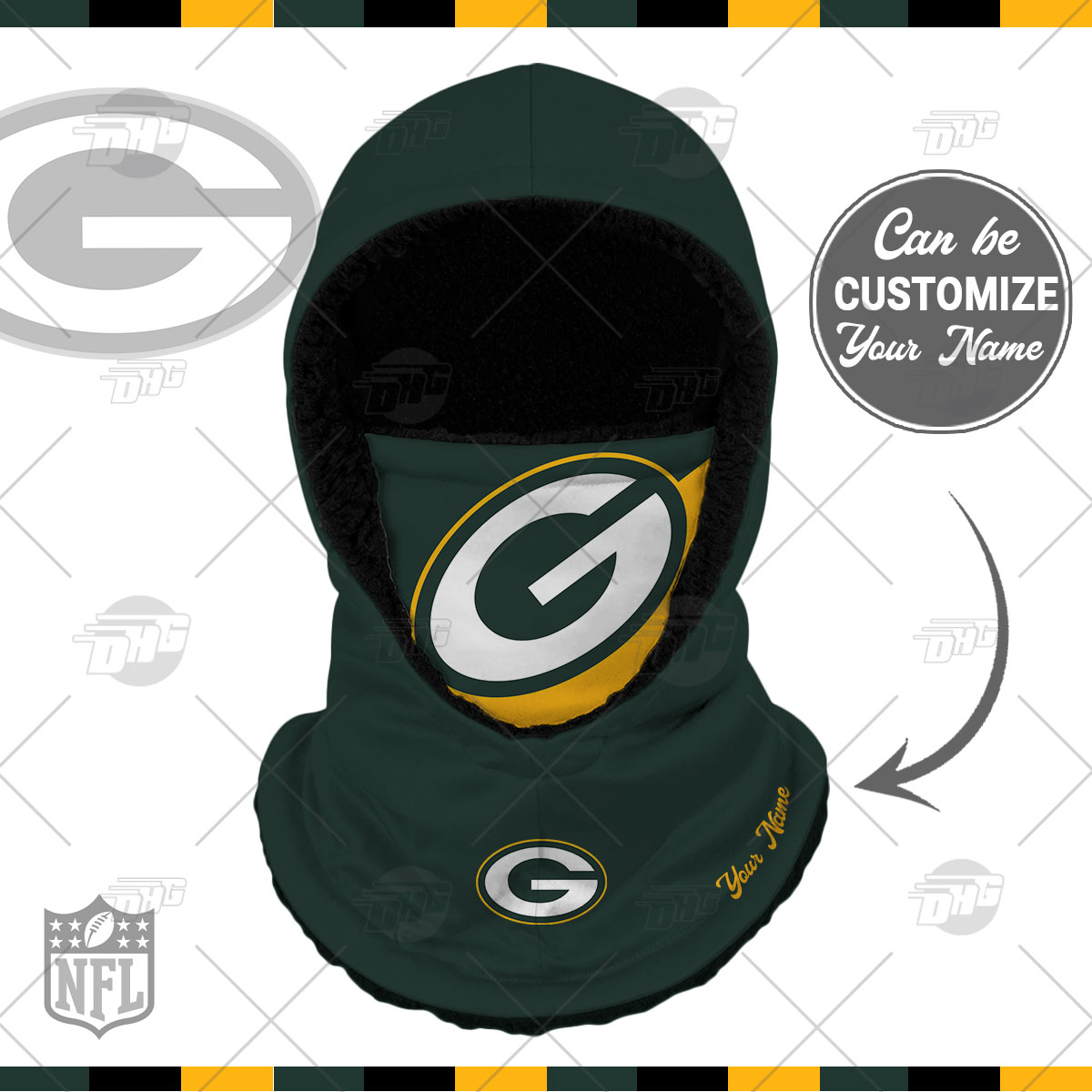 Personalized NFL Green Bay Packers Hooded Gaiter