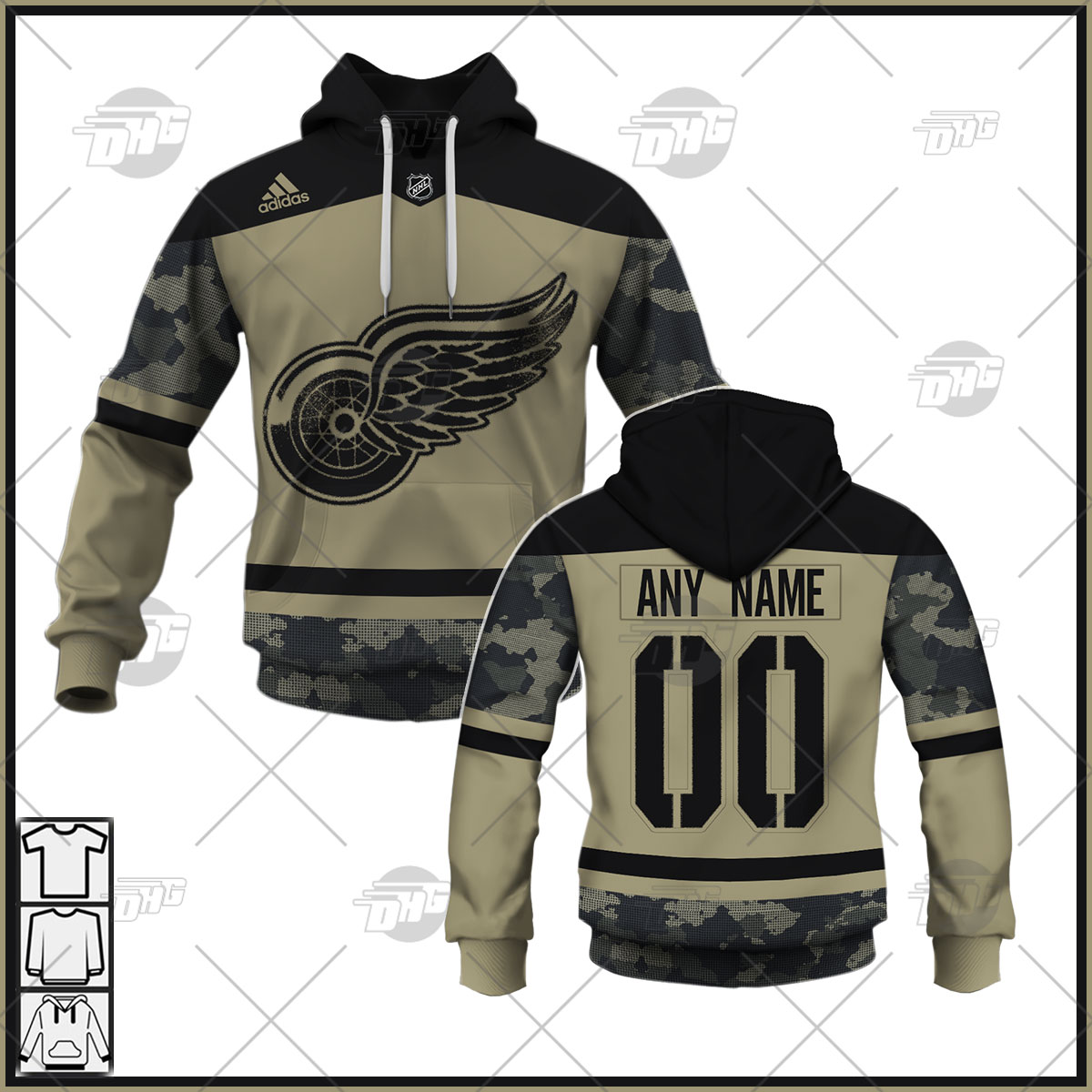 Personalized NHL Detroit Red Wings Camo Military Appreciation Team Authentic Custom Practice Jersey Hoodie