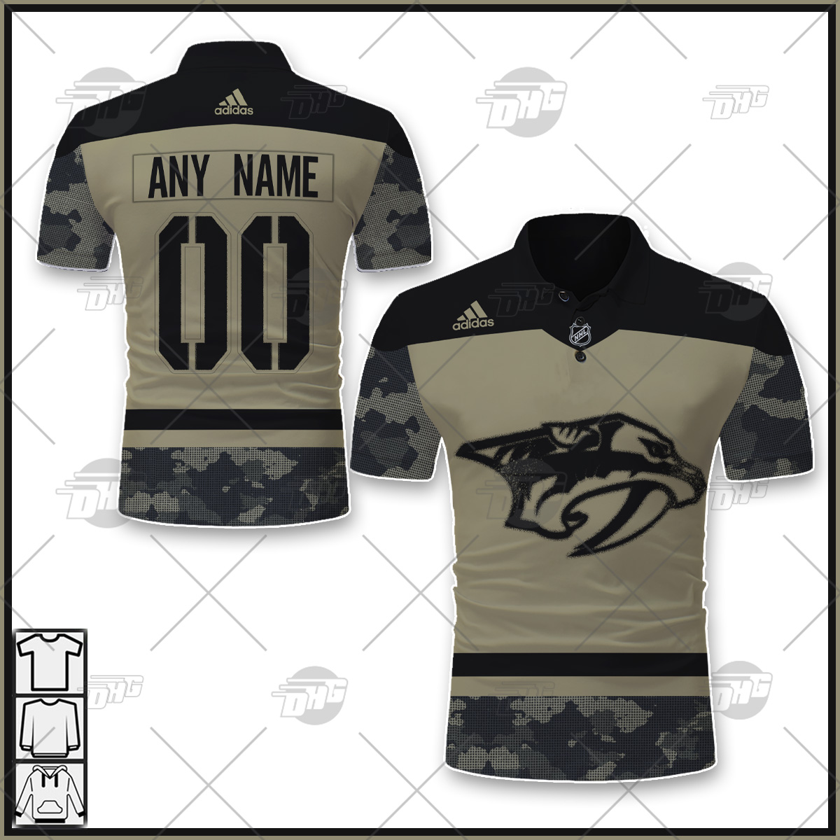 Personalized NHL Nashville Predators Camo Military Appreciation Team Authentic Custom Polo Jersey