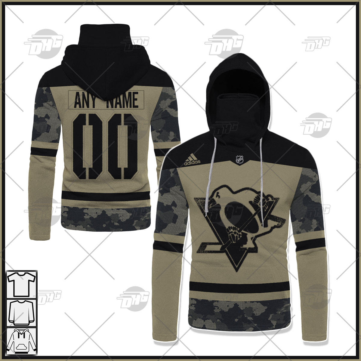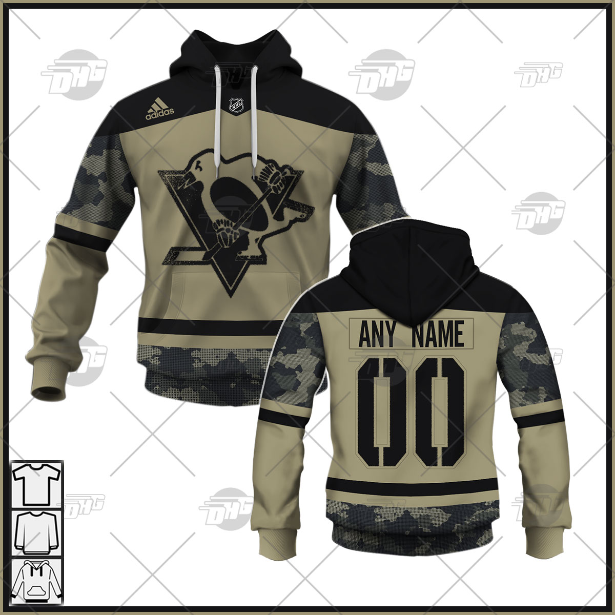 Personalized NHL Pittsburgh Penguins Camo Military Appreciation Team Authentic Custom Practice Jersey Hoodie