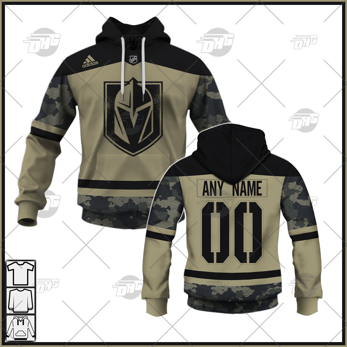 Personalized NHL Vegas Golden Knights Camo Military Appreciation Team Authentic Custom Practice Jersey Hoodie