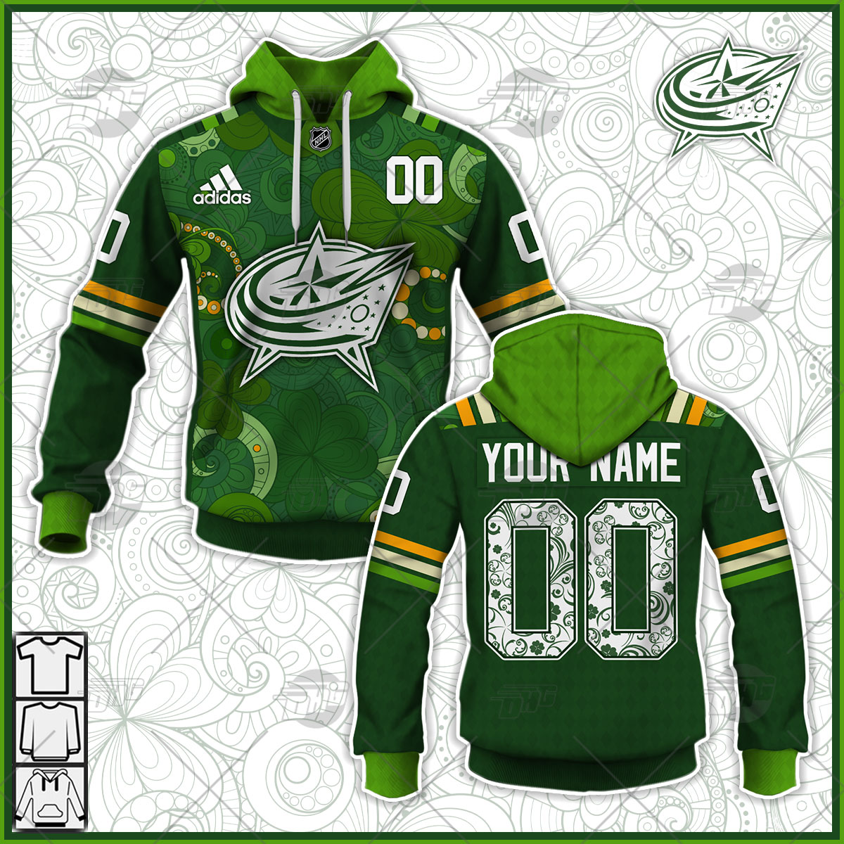 Personalized NHL Columbus Blue Jackets Jersey 2022 St. Patrick’s Day Hoodie Shirt Long Sleeve