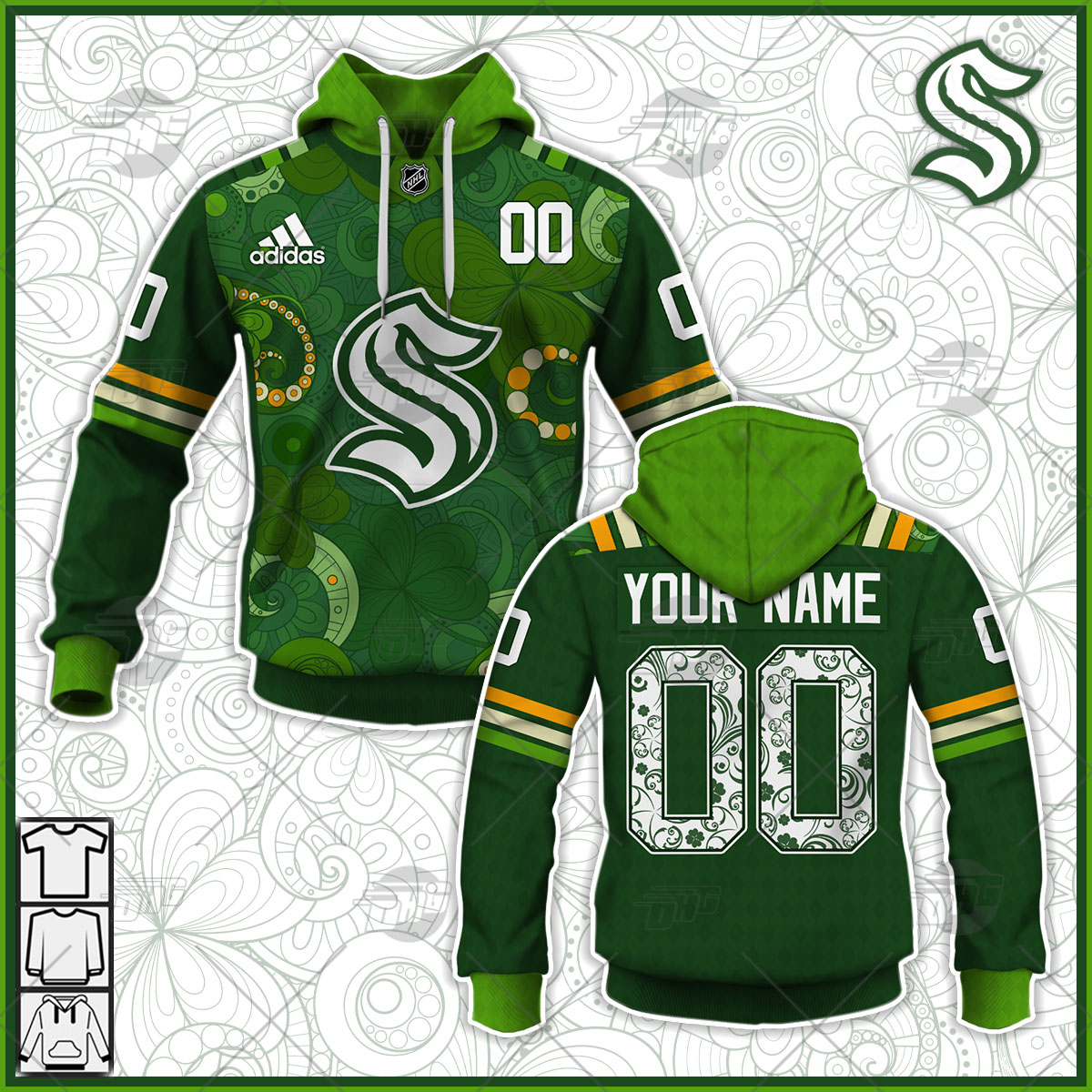 Personalized NHL Seattle Kraken Jersey 2022 St. Patrick’s Day Hoodie Shirt Long Sleeve