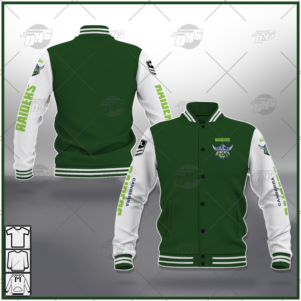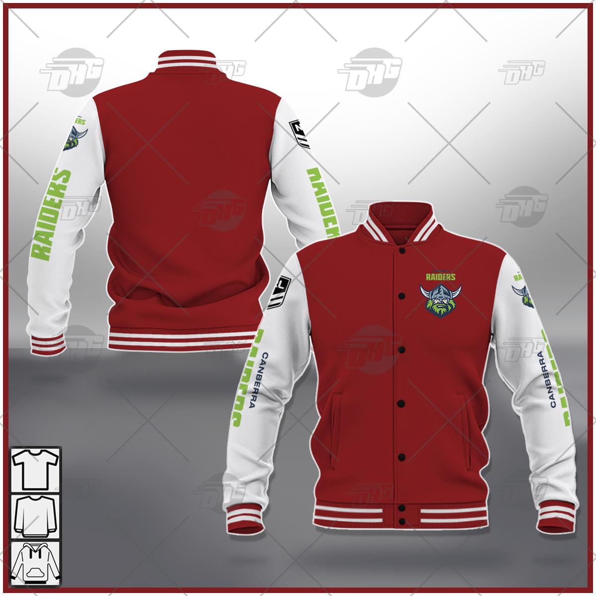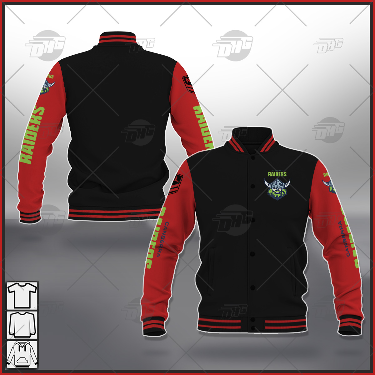 Be the first to review “Baseball Jacket NRL Canberra Raiders Black Brown Orange Pink Blue Navy Green” Cancel reply