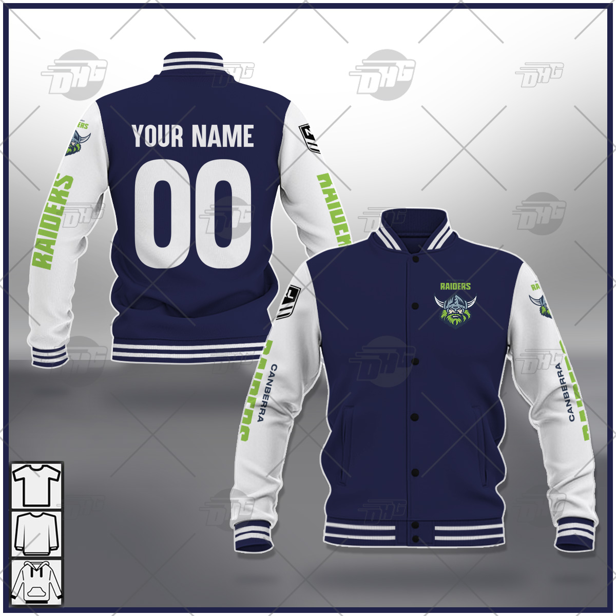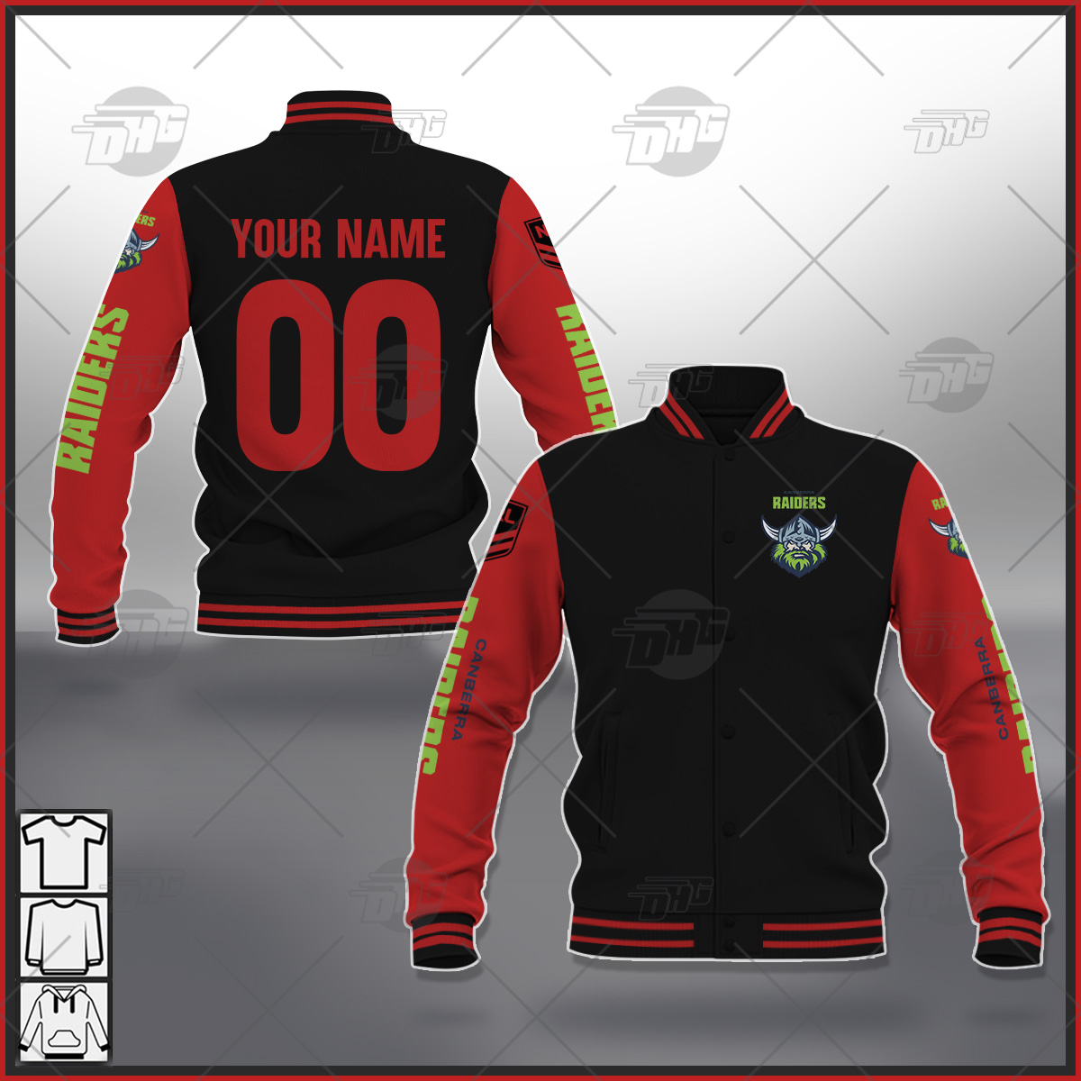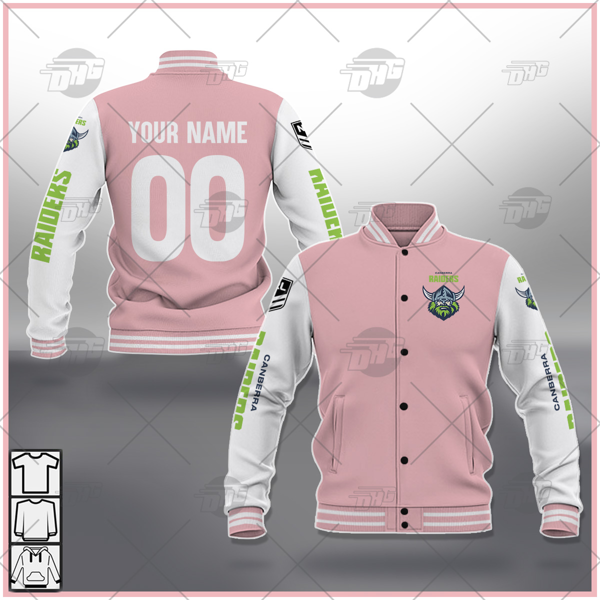 Custom made Baseball Jacket NRL Canberra Raiders Black Brown Orange Pink Blue Navy Green