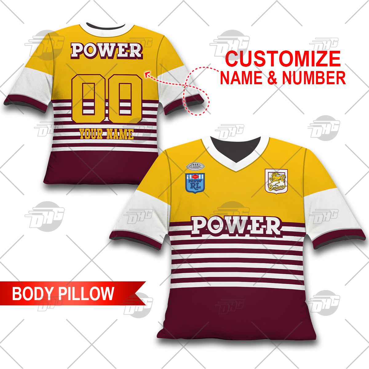 Personalised NRL Brisbane Broncos Vintage Body Pillow Best gift for fans