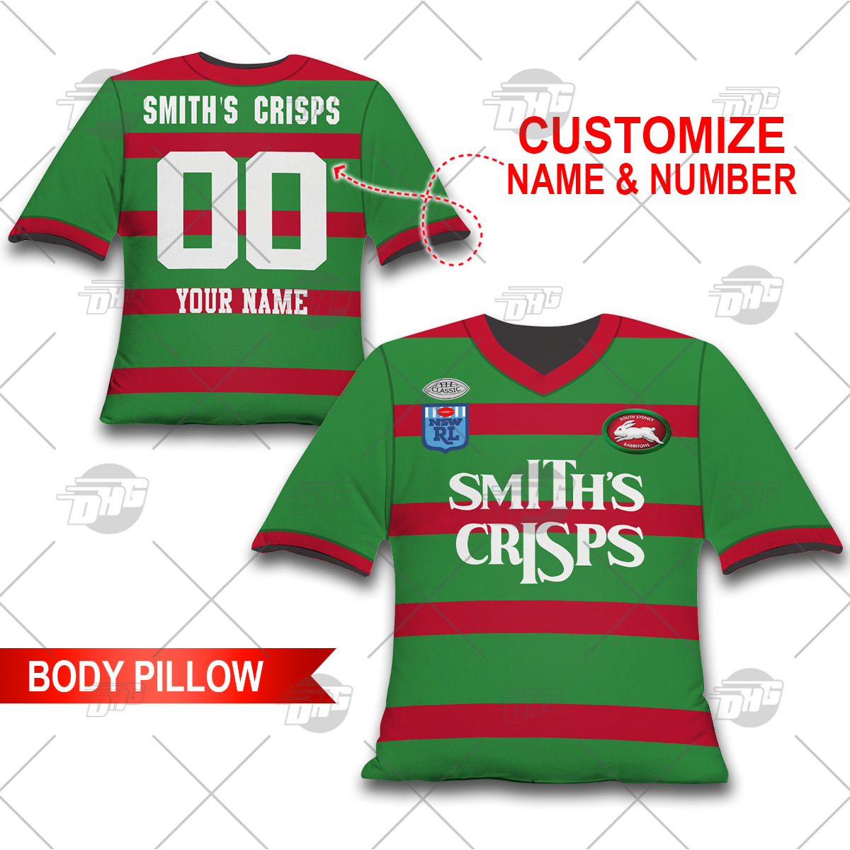 Personalised NRL South Sydney Rabbitohs Vintage Body Pillow Best gift for fans
