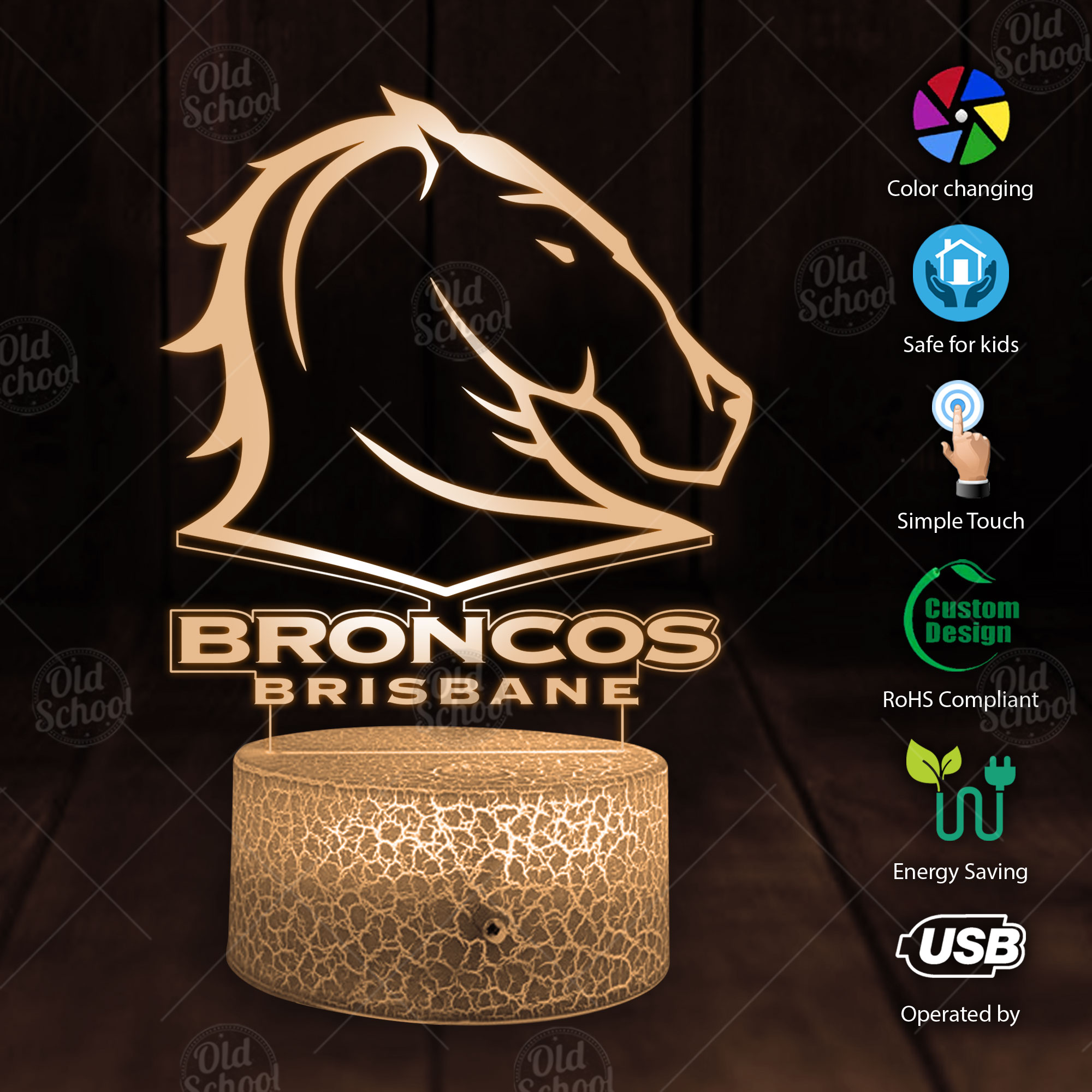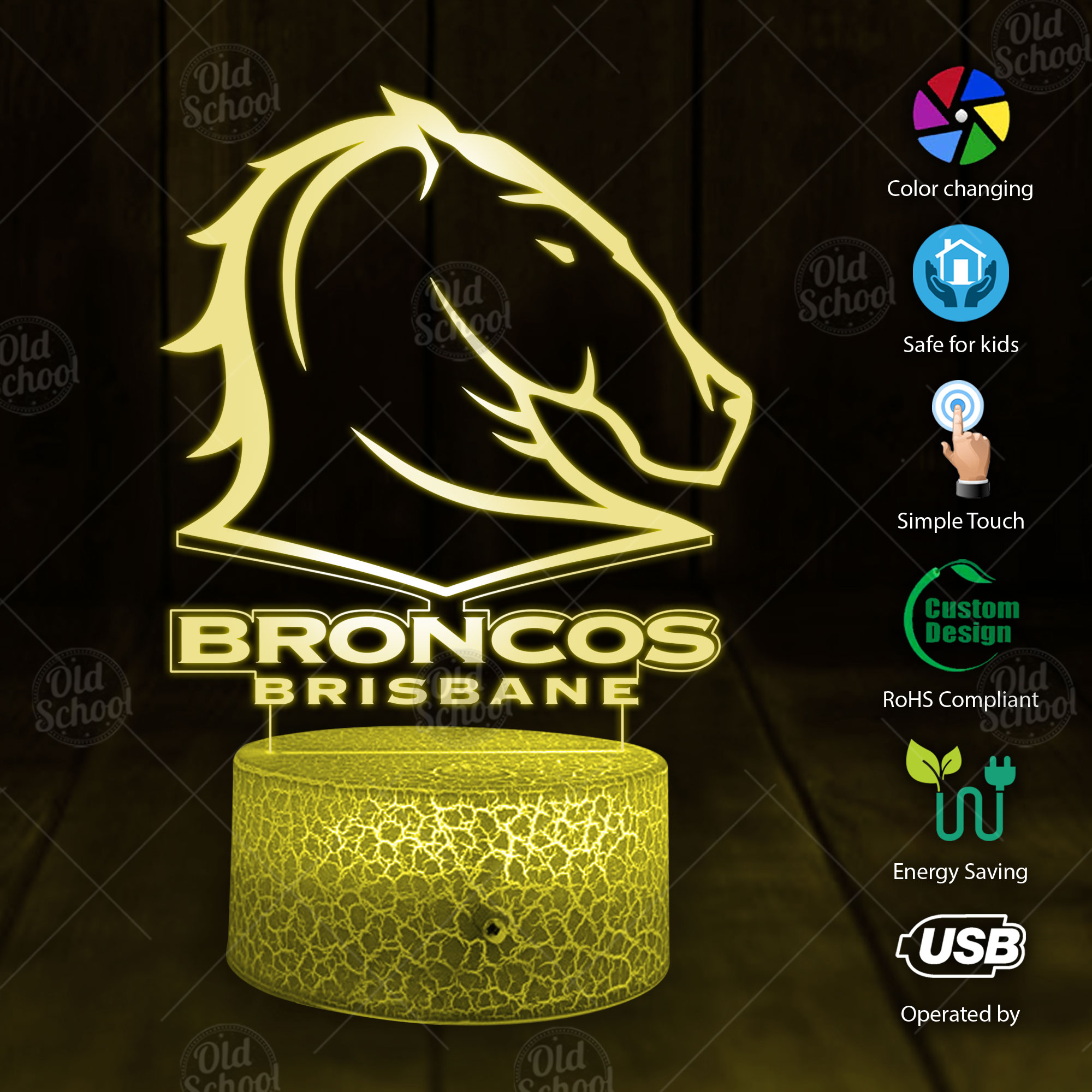 Brisbane Broncos NRL 7 Color LED Color Changing Lamp Best Gift For Fans Dad Gift Mom Gift