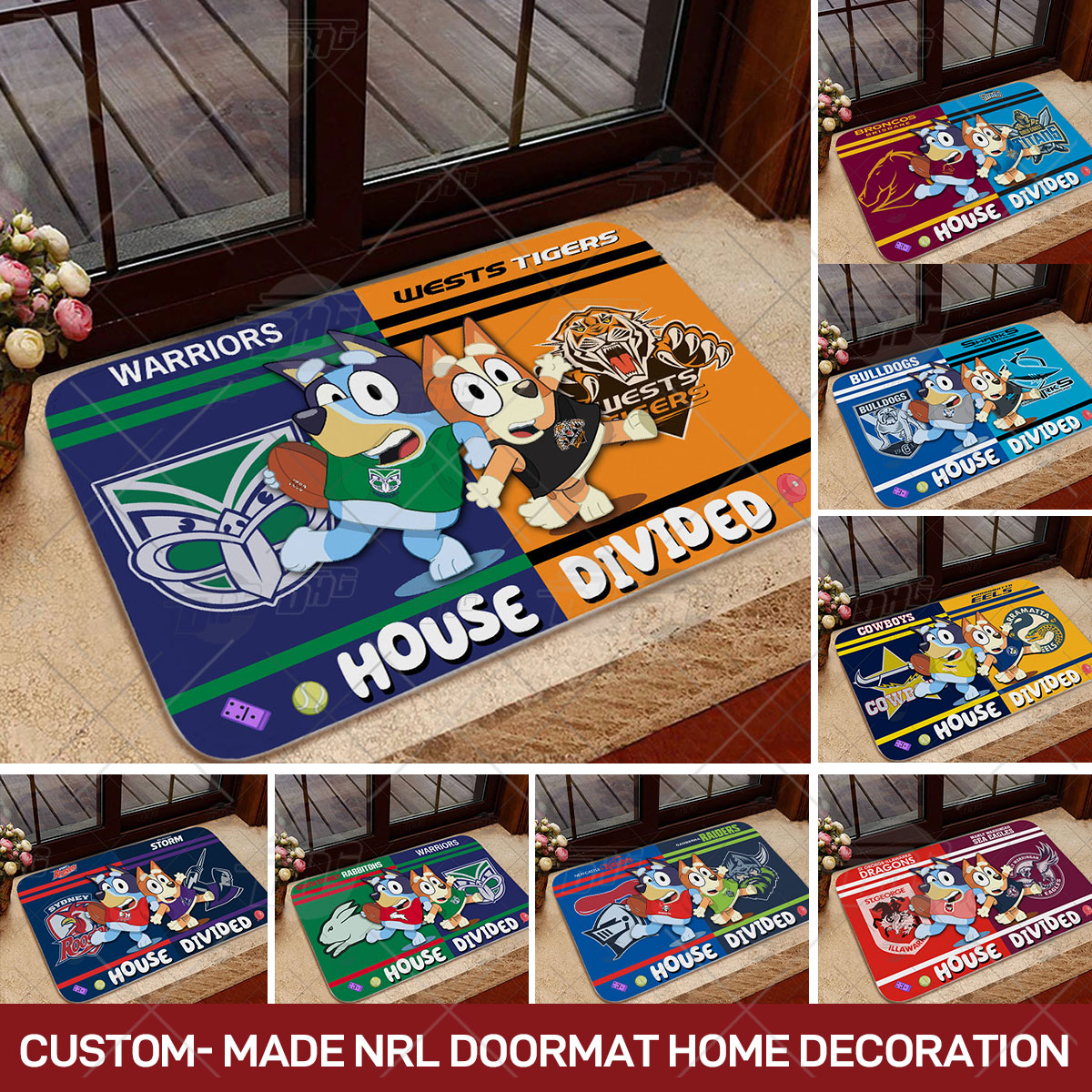 Custom-made NRL x Bluey House Divided Doormat Home Decoration