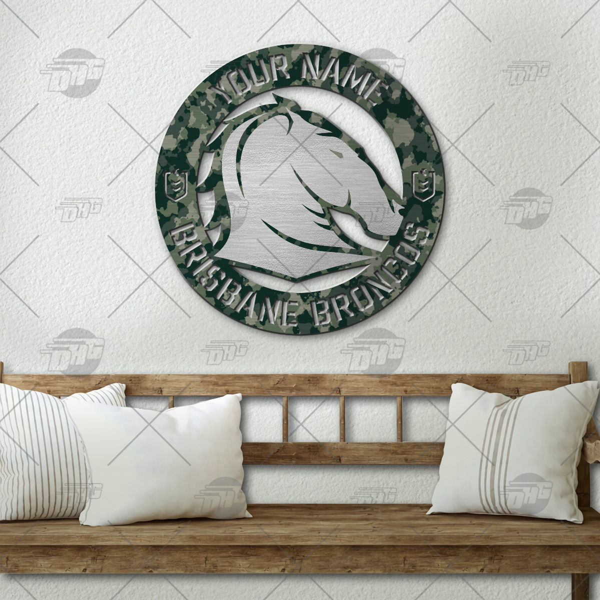 Custom made NRL Brisbane Broncos Cut Metal Sign Camo Hot Newest Decoration product