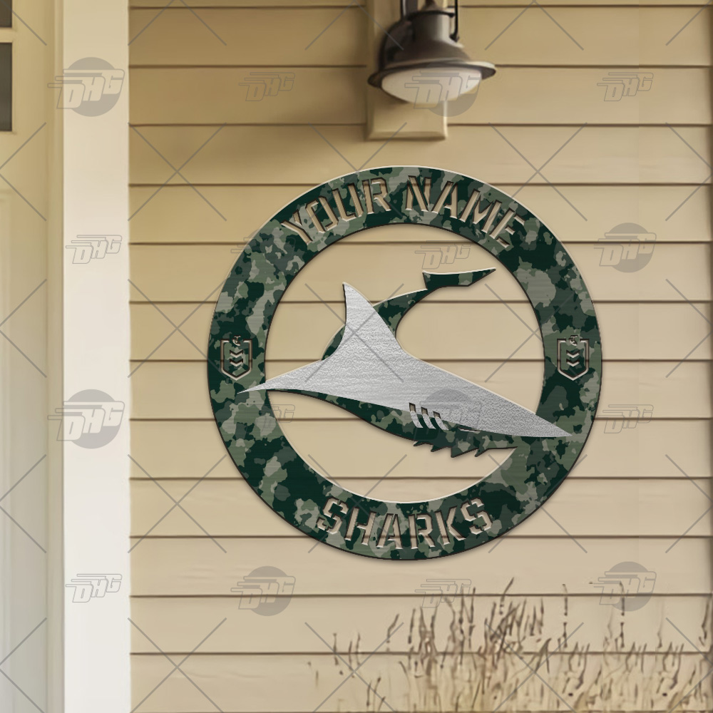 Custom made NRL Cronulla Sharks Cut Metal Sign Camo Hot Newest Decoration product