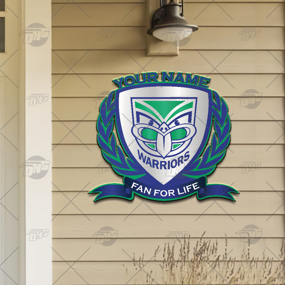 Personalise Name NRL New Zealand Warriors Logo Metal Sign Wall Art Decoration