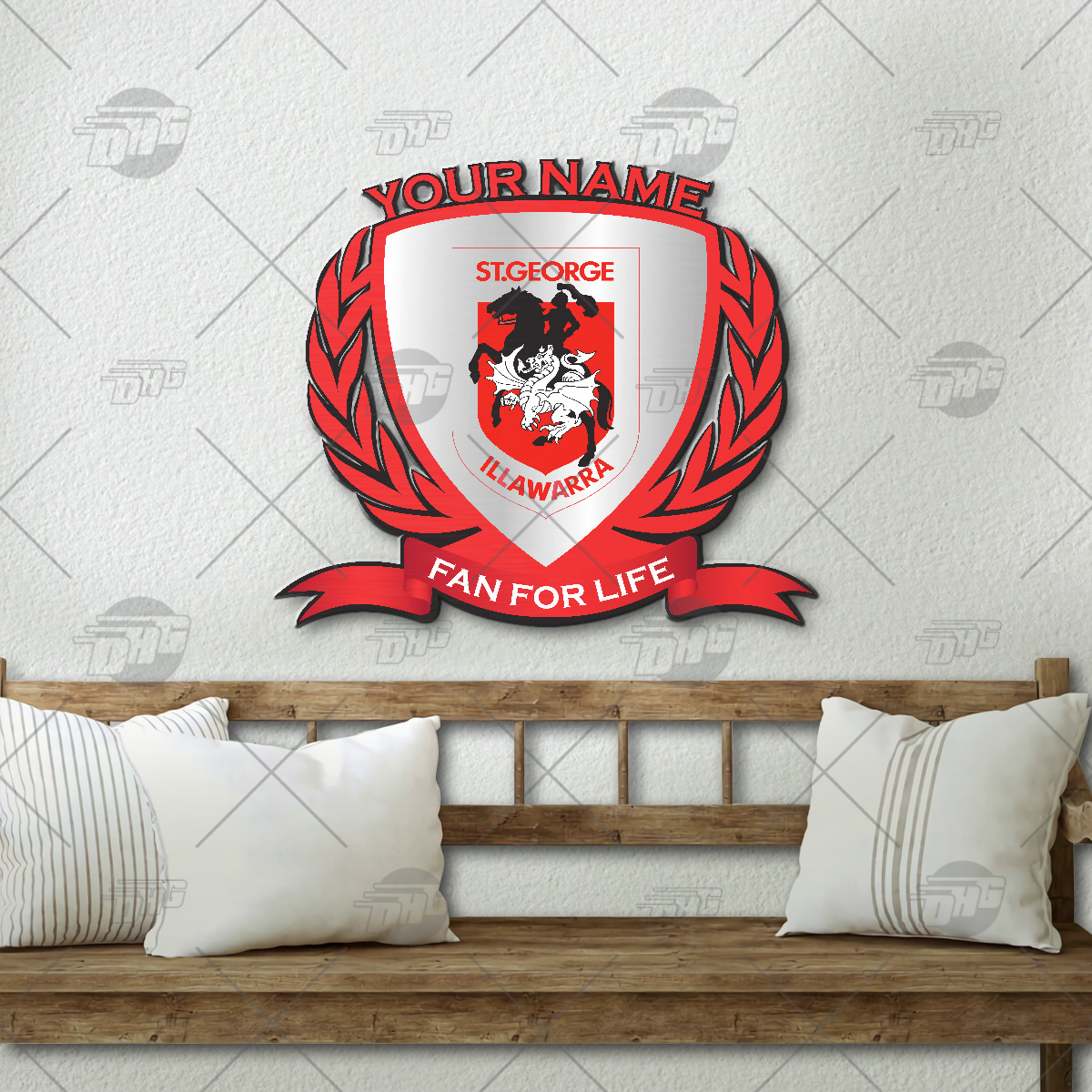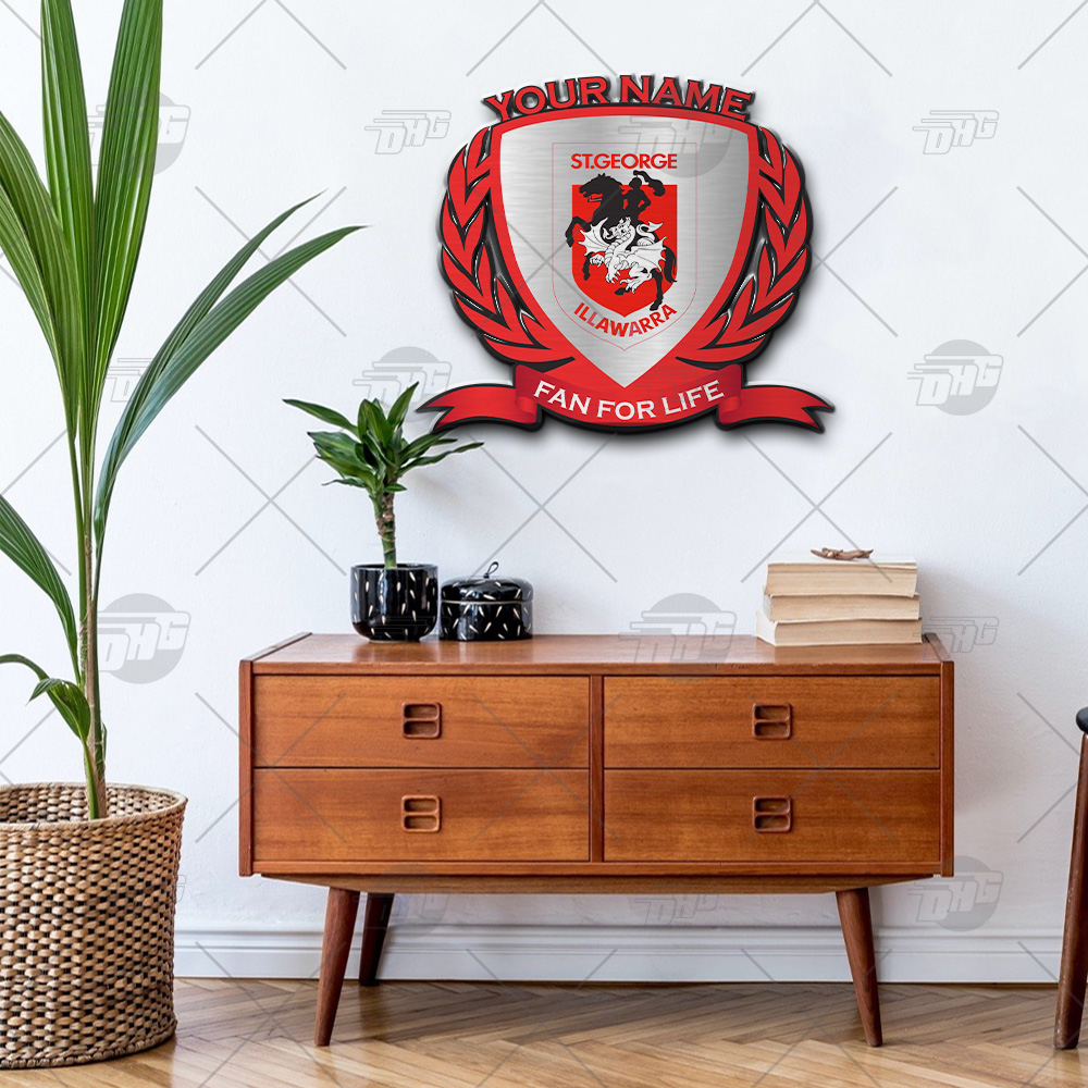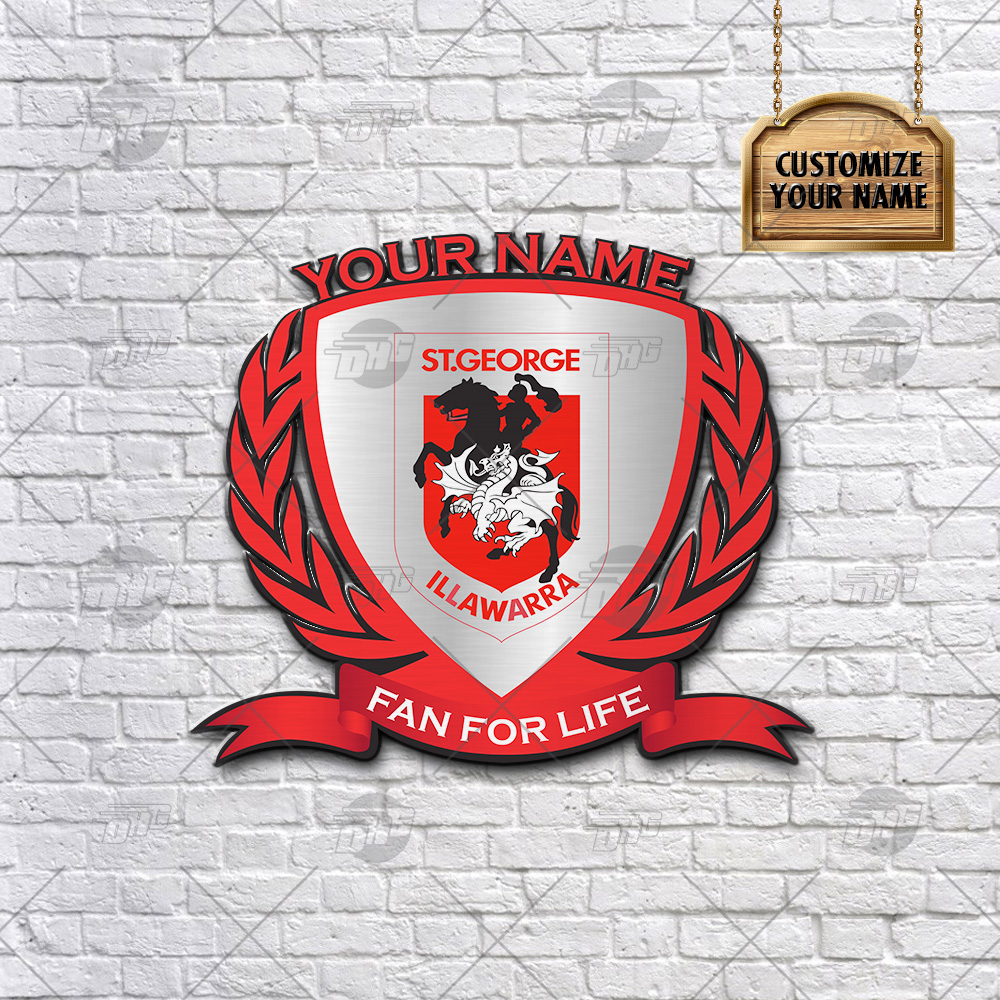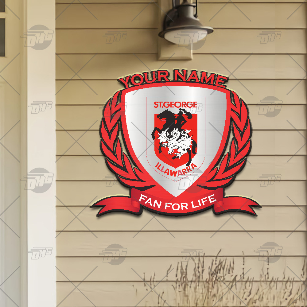 Personalise Name NRL St. George Illawarra Dragons Logo Metal Sign Wall Art Decoration