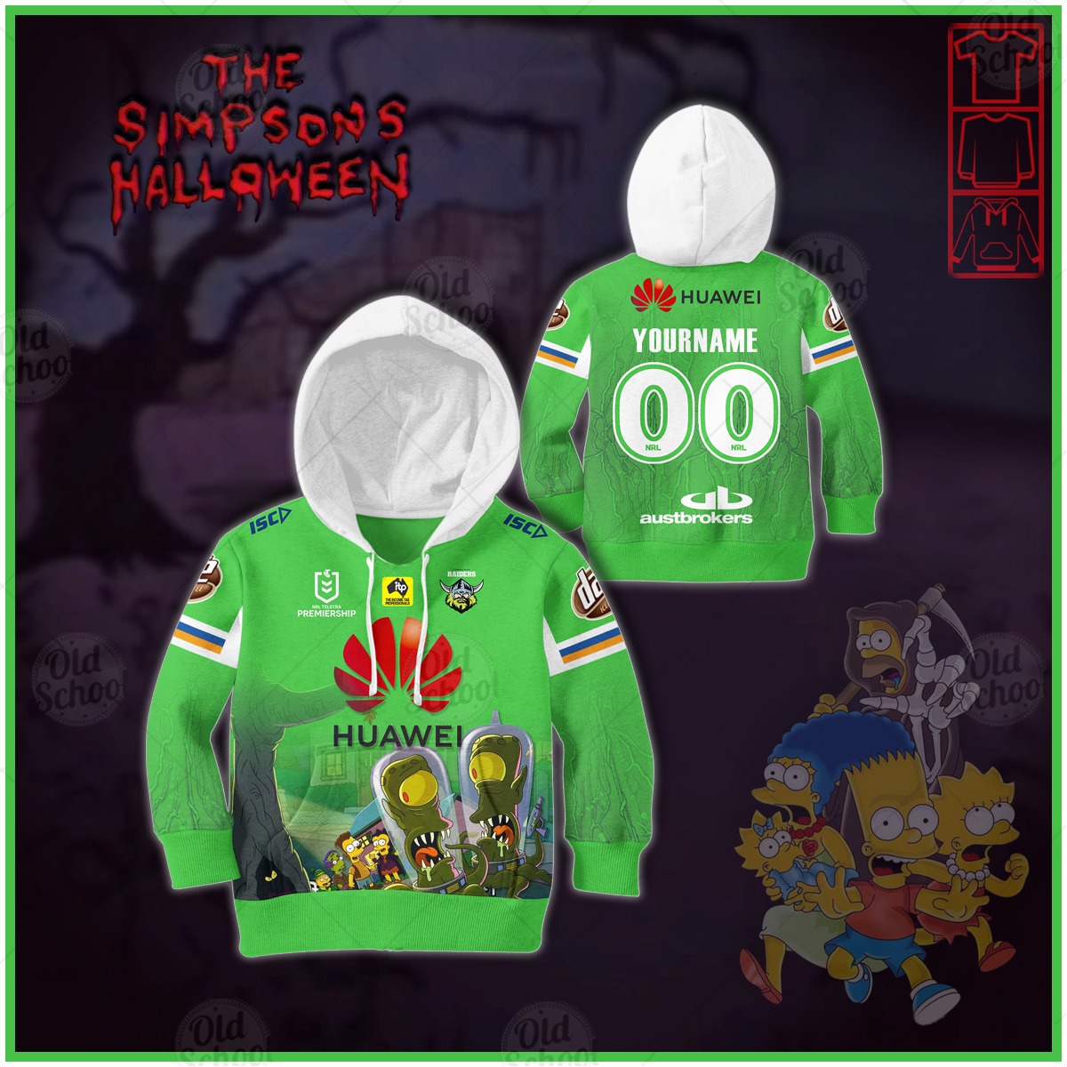 Personalise NRL Canberra Raiders x The Simpsons 2020 Halloween Jersey for KID