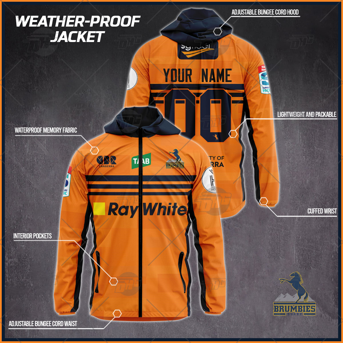 Personalised Super Rugby Act Brumbies weather proof jacket rain proof jacket